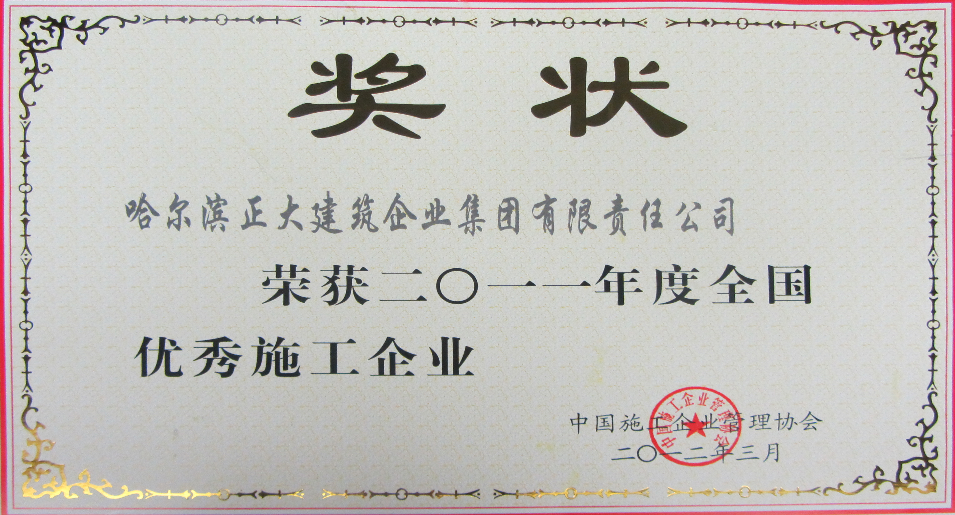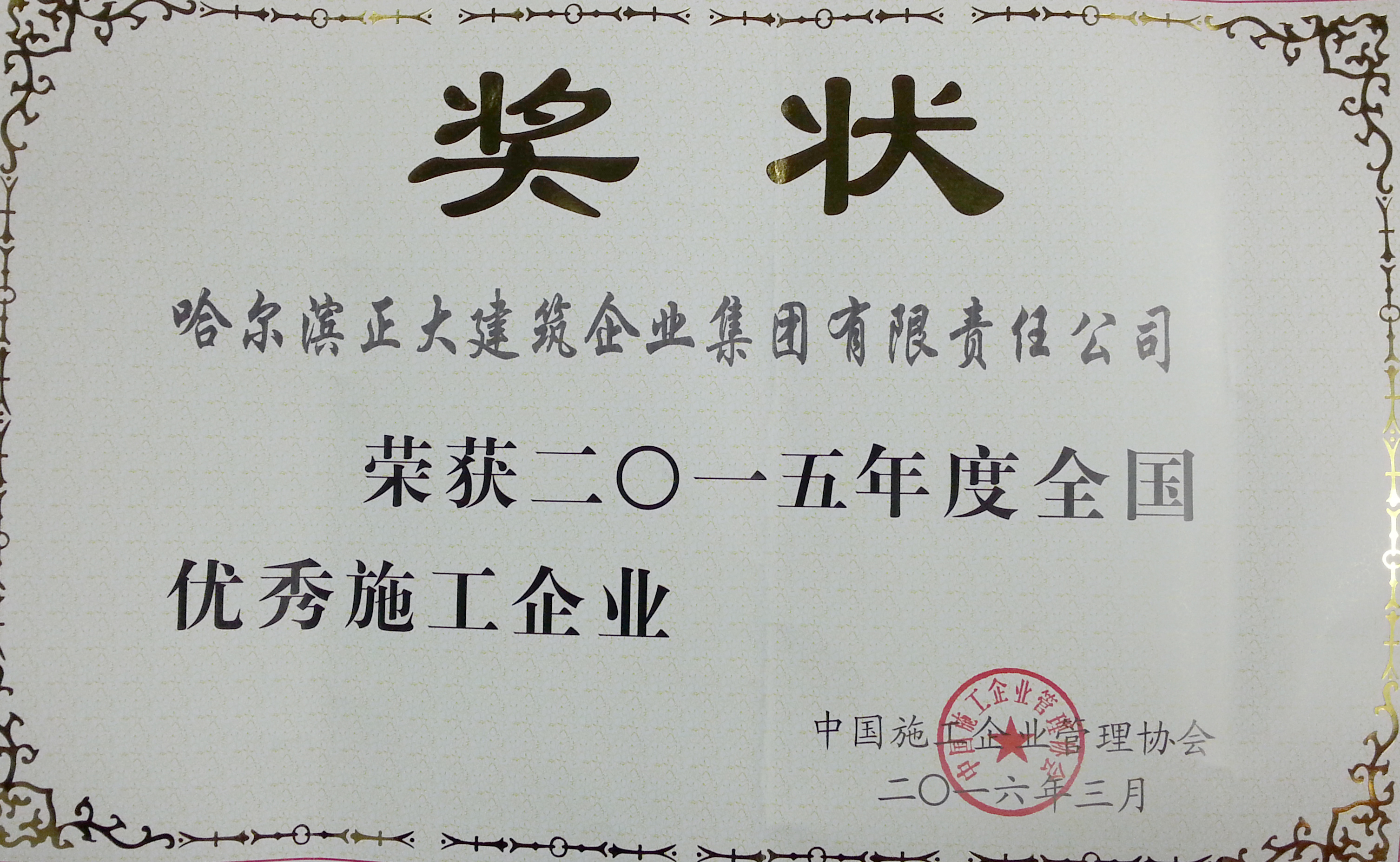 公司成立至今,先后被評為全國優秀施工企業、全國用戶滿意施工企業,全國首批建筑業誠信施工企業,全國“安康杯”競賽優勝企業,全國工程建設質量管理優秀企業、中國建設系統企業信用信譽AAA級單位,并多次榮獲省、市“先進單位”、“優秀單位”、“重合同守信用單位”、“黑龍江省優秀施工企業”、“黑龍江省用戶滿意施工企業”等光榮稱號。并連續獲得哈爾濱市質量管理先進單位、黑龍江省質量管理先進企業、黑龍江省質量管理獎、黑龍江省“安康杯”優勝企業等榮譽。并在建筑施工現場環保管理上創造了一項“中國企業新記錄”。